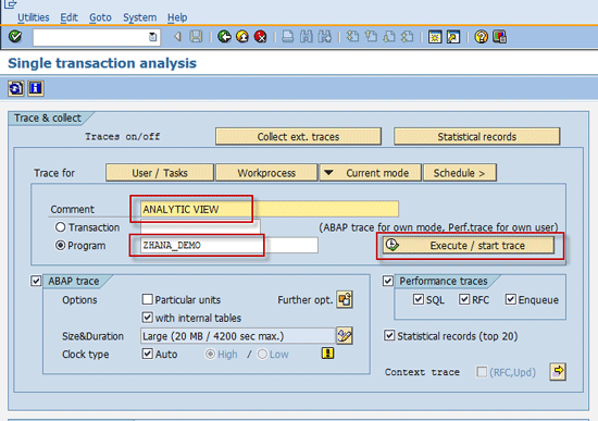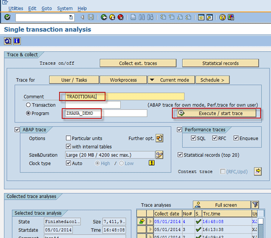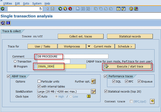 Run a performance trace in traditional ABAP mode
