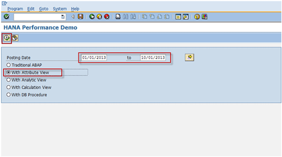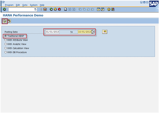 Enter the same date range used before and select the With DB Procedure radio button (Figure 64). Click the execute icon or press F8 to run the program.