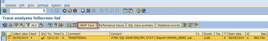 Trace results for the traditional ABAP mode
