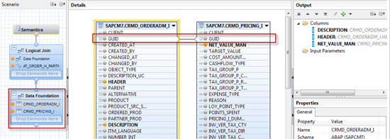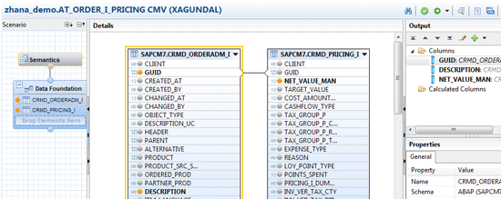 - Create an attribute view AT_ORDER_I_PRICING to retrieve product or item and net price by joining CRMD_ORDERADM_I and CRMD_PPRICING_I tables