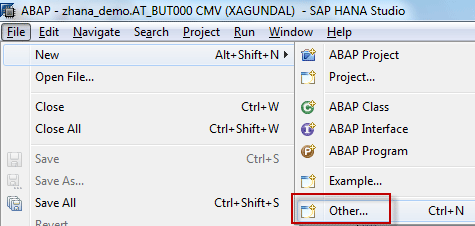 A proxy needs to be created for this procedure so that the ABAP program can invoke it. Go to the ABAP perspective in SAP HANA Studio using menu path Window > Open Perspective > ABAP. Create a Database Procedure Proxy by right-clicking the Dictionary folder and selecting New > Database Procedure Proxy (