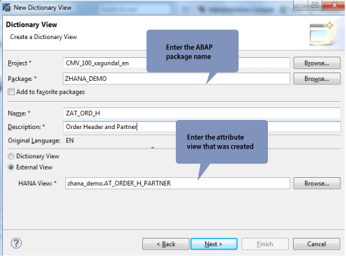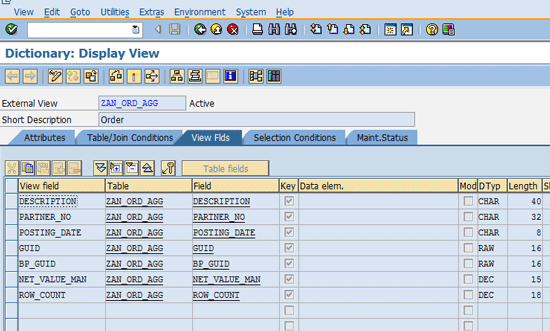 - Expose the attribute views as external ABAP views – ZAT_ORD_H, ZAT_ORD_I and ZAT_BP