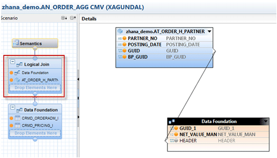 Similarly, create another attribute view AT_ORDER_I_PRICING and add tables CRMD_ORDERADM_I and CRMD_PRICING_I. Create an inner join between the GUID fields by dragging and dropping from one table to the other (Figure 15).