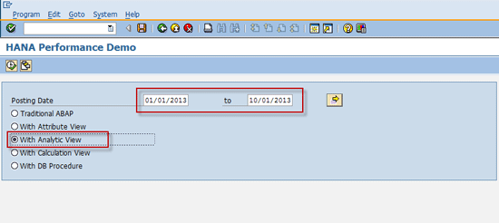 Enter the same date range used before and select the With Calculation View radio button (Figure 49). Click the execute icon or press F8 to run the program.