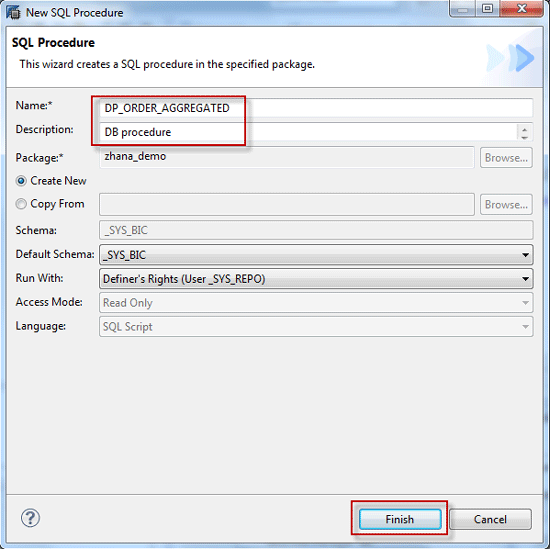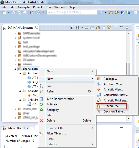 Follow these steps to create the database procedure and the proxy. Create a database procedure in the Modeler perspective in SAP HANA Studio by right-clicking the package and selecting New > Procedure (Figure 52). This opens the pop-up screen shown in Figure 53.