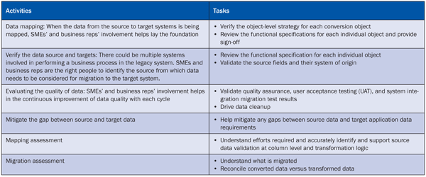 - Identify and help resolve issues. The closer SMEs and business reps work with the conversion team, the better the quality of converted data.