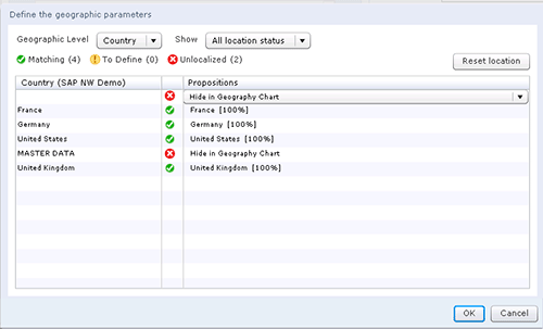 During the process of defining the dimension type, you can also configure details such as the mapping of your own corporate information to certain regions or countries that are available to avoid any mismatch in which data is not fully matching typical geographic codes. With the new features, you can manually define the correct match (Figure 4).