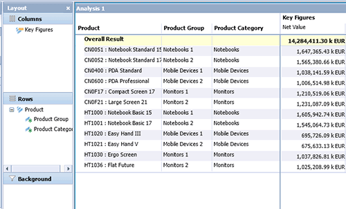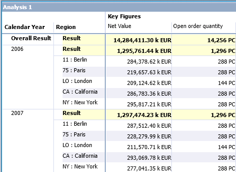 If you have configured your BEx query in such a way, BusinessObjects Analysis, edition for OLAP uses that configuration and displays the result set accordingly (Figure 11).