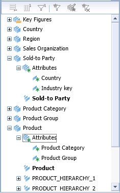 Another gap between BEx Web Analyzer and BusinessObjects Analysis, edition for OLAP was the missing functionality of an option called Display as Hierarchy. In the BEx query designer, you can use a set of characteristics and simulate a hierarchical display by activating Display as Hierarchy (Figure 10).