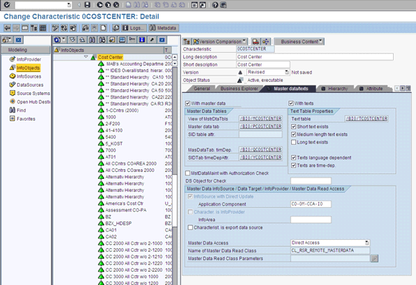 Master data for characteristic cost center