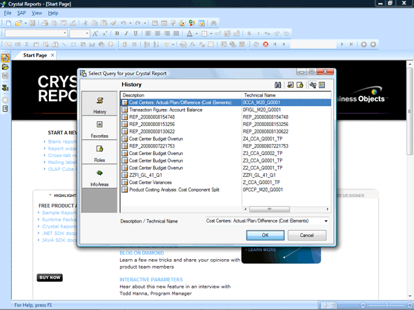 Choosing an SAP NetWeaver BW query as the data source for a Crystal Report