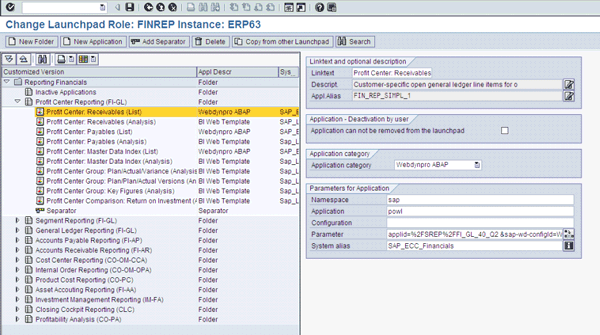 Report launchpad configuration (transaction LPD_CUST)