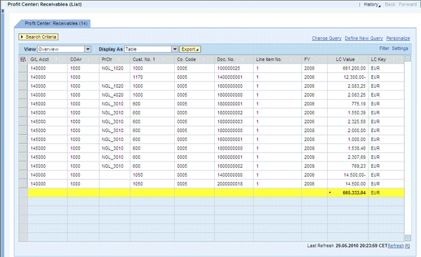 Clicking the first link in the launchpad in Figure 1 executes the Profit Center Receivables Report, giving the results shown in Figure 7.
