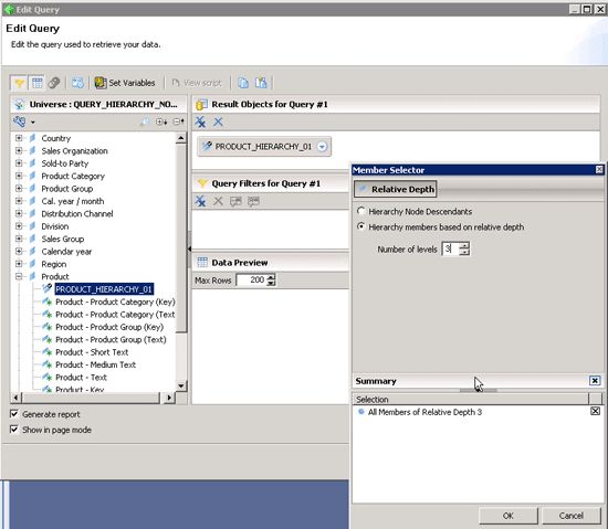In the same way as Crystal Reports for Enterprise, Web Intelligence is with release 4.1 able to create a level-based selection in case your underlying BEx Query contains a hierarchy variable (Figure 7).
