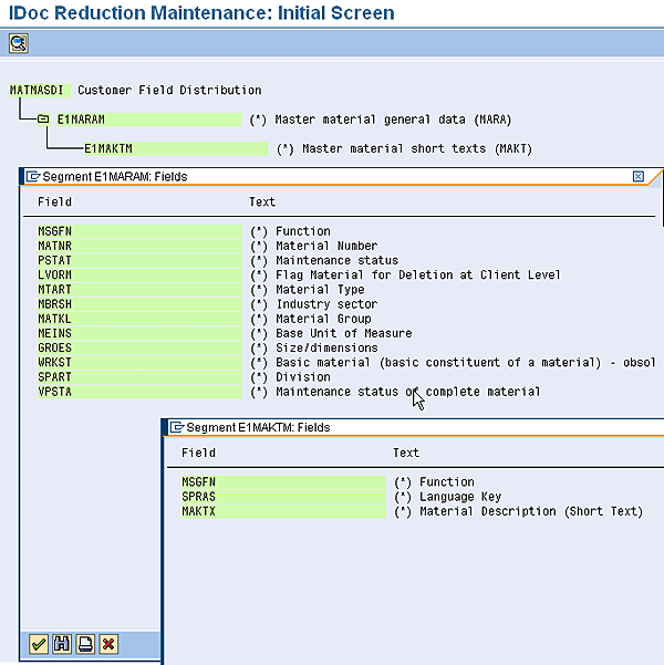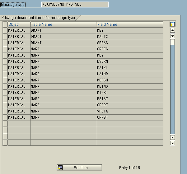 Fields identified within the message /SAPSLL/MATMAS_SLL