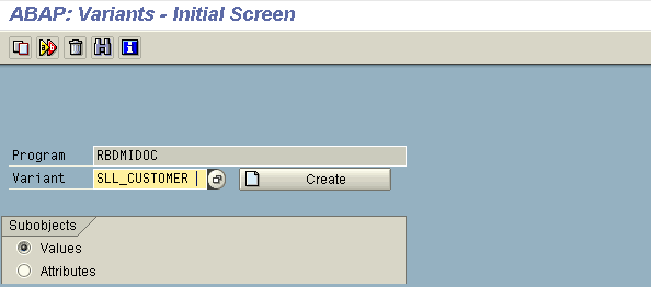 Enter RBDMIDOC, select Variants, and click the Change button to bring up the screen shown in Figure 16, which displays the variant name. Click the Create button to create the variant. This brings up the screen in Figure 17, in which you enter the message type. This program execution ensures that the data related to that object is picked up and transferred to the target system.