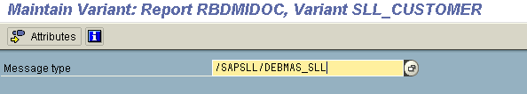 First, you need to create a separate variant for report RBDMIDOC for every type of master data you wish to transfer (e.g., customer, vendor, and material master data) (Figure 15). You must also assign the appropriate message type to each variant. See Table 3 for a list of variants and appropriate message types.