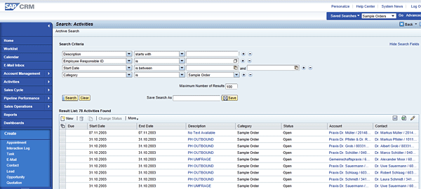 Embedded Search enables you to act on the results of your queries via convenient links to related actions. These links enable you to access not only SAP CRM information but also a wide range of transactions. You can also use knowledge management search functionality to find relevant documents. An example of this type of search is shown in Figure 1.