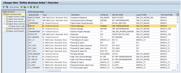 Look at the following example. Start transaction CRMC_UI_PROFILE (Figure 12), and in my example select the row for business role CHM-CM (that has been assigned to navigation bar CHM-CHANNELMANAGER). You can select or deselect the search objects that are relevant for this business role by selecting the Adjust Central Search folder.