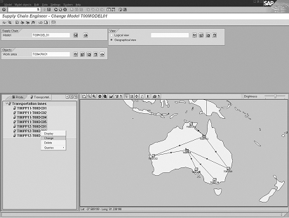 The relationships among each locations in a supply chain can be modeled using transportation lanes in APO. They are created in APO based on master data that is defined in R/3.