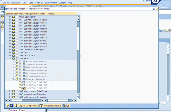 Select the required business scenario by pressing F4 and choosing the option based on your project requirements and current landscape (Figure 14).