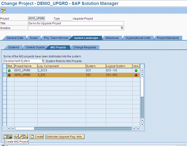 Note that here the older version of the IMG view exists and by default the system creates the IMG project for newly added logical components as well (Figure 19).