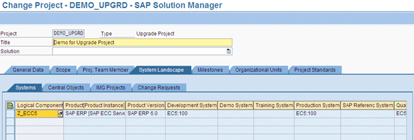 The landscape is assigned in the System Landscape tab (Figure 3). The prerequisite is to have the logical component of the system that is planned to be upgraded.