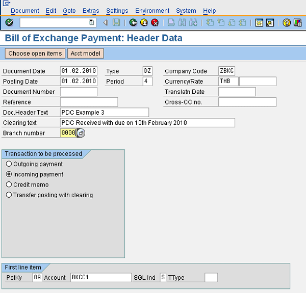 Now let’s see the procedural steps followed in the SAP system for accounting and processing of post-dated checks.