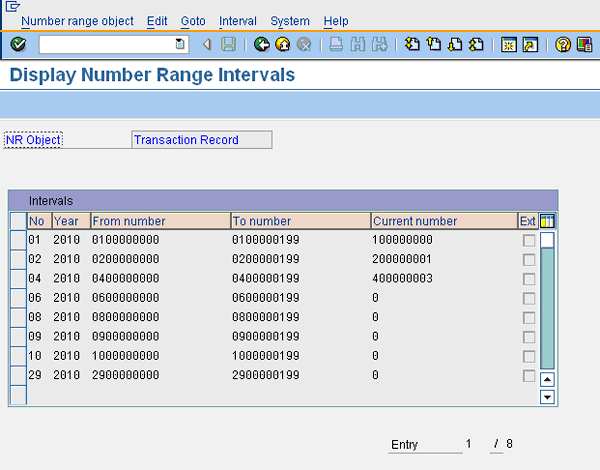 In this IMG activity, you maintain the required number ranges for transaction records. Depending on the requirement, number ranges are maintained for the transactions shown in Table 1.