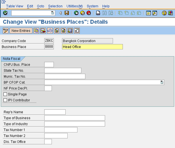 Step 8. Define the business place by using transaction SPRO and by following menu path Cross-Application Components > General Application Functions > Cross-Application Document Numbering > Thailand > Business Places > Define Business Places (Figure 22).