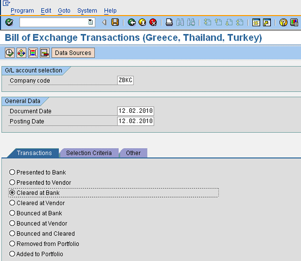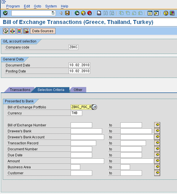On the Selection Criteria tab, enter the data for portfolio ZBKC_PDC_R and the currency the check is using (Figure 6). You can select other fields to narrow down the selection criteria.