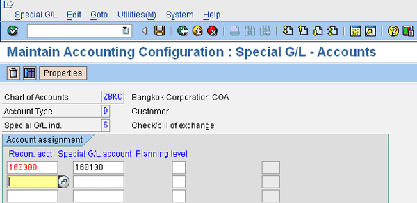 In this IMG activity, you create the required special general ledger indicators and map the alternate reconciliation accounts to each defined indicator. For this example, I used the standard special general ledger indicator S for post-dated checks received and the newly defined indicator 1 to track the bounced post-dated checks. I have created and assigned the alternate reconciliation accounts 160100 and 160110, as shown respectively in Figures 15 and 16.
