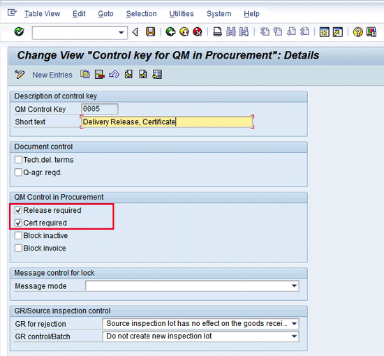 Your first step is to perform the necessary configuration. A control key is used to control which parameters the system should check while performing a transaction. To define a new control key or make changes to the existing one, follow menu path SPRO > Reference IMG > Quality Management > QM in Logistics > QM in Procurement > Define Control Keys (Figure 1). Select control key 0005 and click the magnifying glass icon.