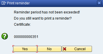 Figure 16 shows the message that appears if the deadline to submit the certificate has not yet been exceeded. You can still confirm the message and create the reminder by clicking the Yes button.