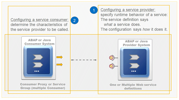- 1 (right): First you configure the provider service, specifying how the service can be called from a remote system