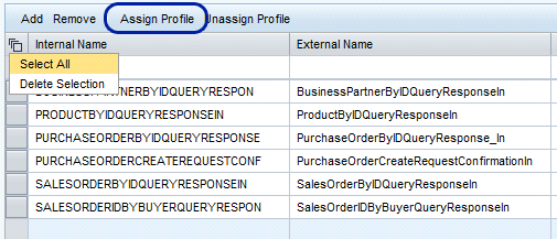 After you add all the provider services to the scenario, you need to assign a profile to the services. Select a service and click the Assign Profile button (Figure 11). You can select the profile from a list shown in the pop-up window. Different services may require different settings (e.g., different security settings depending on their business criticality). Therefore, it makes sense that each service can have its own profile. In my example, I just used the one profile for all services. To select all the services at once, click the select icon