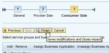 After you assign the profile, navigate to the third wizard step (Consumer Side). For this example, I skip this step, so click the Finish button to create the business scenario (Figure 12). Like the profile, you need to activate the business scenario. Click the Yes button in the pop-up window.