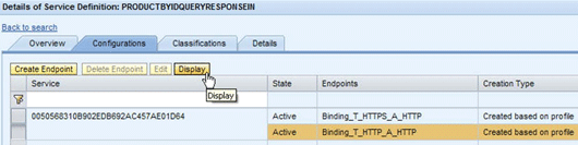 Selecting the Configurations tab in Figure 16 shows the two endpoints for the service listed in a table (Figure 17). In the Creation Type column, you can see that both endpoints are Created based on profile. You can select and display the endpoints, but you cannot delete or edit them because they belong to a business scenario.