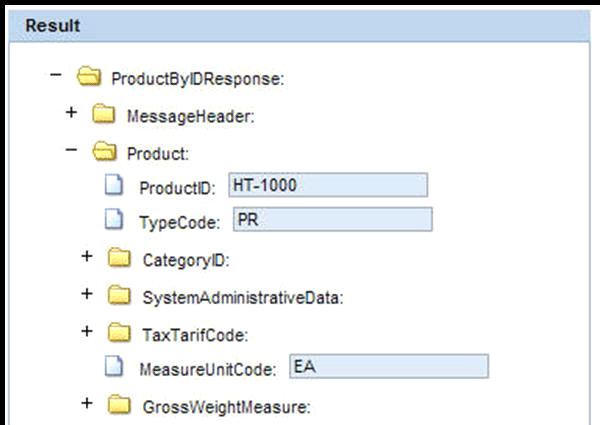 In the Parameters section, you can set the input parameters for the test. The easiest way to test is to enter * for the ProductID (because any product result is OK), and select the is Null check box to suppress the optional MessageHeader. Click Execute to run the test: The Web Service Navigator will call your endpoint. If the SAP NetWeaver Demo Model has been configured (i.e., data has been generated with transaction S_NWDEMO_DG), you should now be able to obtain a valid result for the test (Figure 20). A valid result lists one or more products in the Result section. Any communication error (e.g., HTTP code 404 for service unknown) is displayed below the Result section. Note that the UI of your WS Navigator may show minor differences, depending on the release.