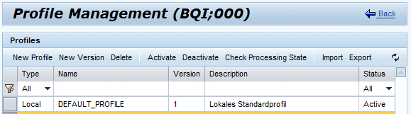 The Check Processing State button in the Profile Management overview navigates to the SOA configuration request queue and enables you to start the request queue processing. If the queue is empty, the Check Processing State button in the Profile Management Overview has no effect — no error or success message is displayed.