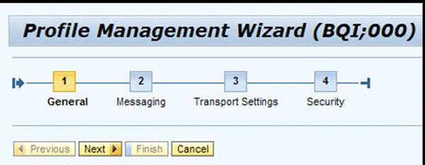 Select a profile in the table to view its settings, which are organized into four tabs. The last three tabs (Messaging, Transport Settings, and Security) reflect the profile’s settings. Together with the profile’s name, you have four categories that you have to set up when you create a new profile, guided by a wizard (Figure 4).