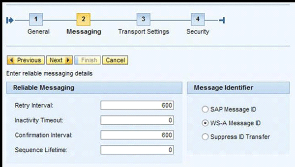 The second step allows you to specify the Web Service Reliable Messaging (WS-RM) settings and the method of message ID transfer (Figure 6). Click the Next button to proceed to step 3.