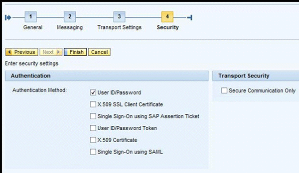 The final parameters in step 4 concern the security settings (Figure 8). In my example, I am using basic authentication with a user ID and password. For productive services, you would use a higher level of security settings.