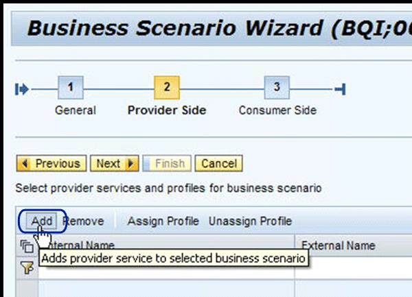Click the Add button to add a provider service to the business scenario