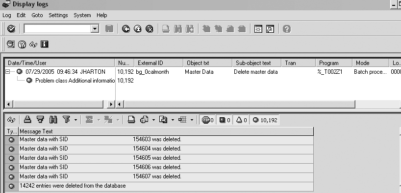 Figure 2 displays the first of a few hundred values of the SID table of 0CALMONTH when a user drills down on the 0CALMONTH time characteristic. Most business environments do not display the calendar months of years 1001, 1002, and so on. These records probably exist because of incorrect loads. It is extremely annoying for a user who wants to filter on a query to have to go through several pages of invalid calendar months.
