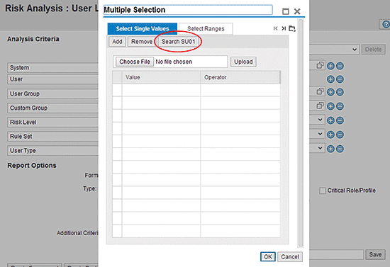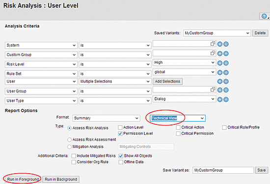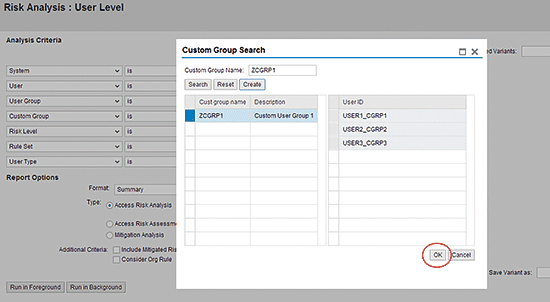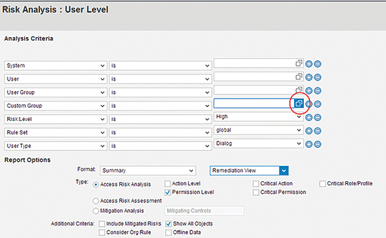A custom user group brings efficiency to running risk analysis reports as you are able to execute the report for a set of users all at once instead of selectively for each user. It can also enhance system performance as you can restrict the selection criteria optimally.