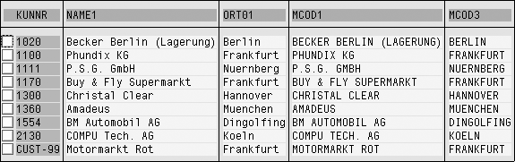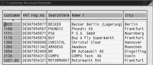 (e.g., XD03) and click on the choose from pick list icon next to the customer field. The new search help