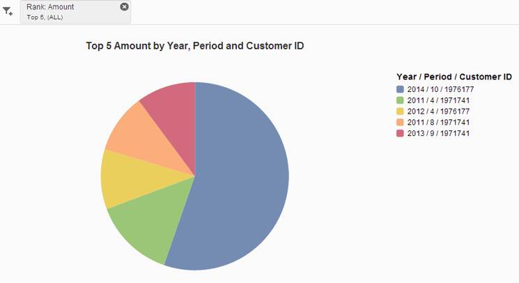 You may now want to do some standard ranking of amounts by your current dimensions (i.e., year, period, and customer ID). Click the rank icon. You are then presented with options for ranking. I go with the top five as shown in Figure 10.