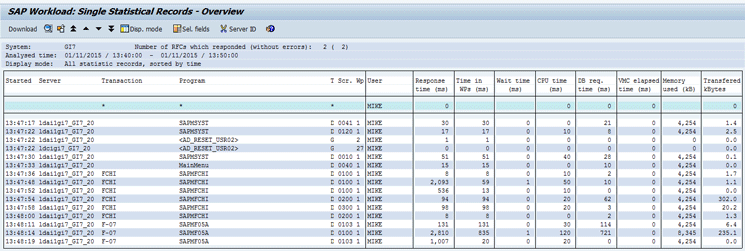 Step 5. Check the STAD records for Test Users MIKE and JERRY in the SAP ERP System
