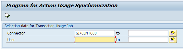 The action usage program syncs the action usage data from the plug-in system to the GRC tables. This synched data is related to the user-executed transaction codes. Through this program, user-executed transactions are copied from the connected plug-in systems into the GRC tables.